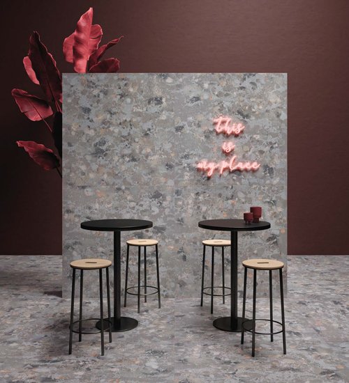 ATTITUDE is the perfect combination of technique and beauty, presenting itself as an “industrial technological stone”. A deep, intense ceramic surface, created by overlapping an endless number of amalgamated chips that differ in size and colour.