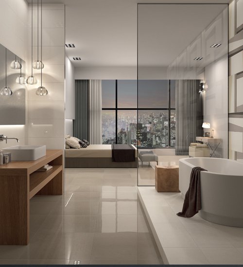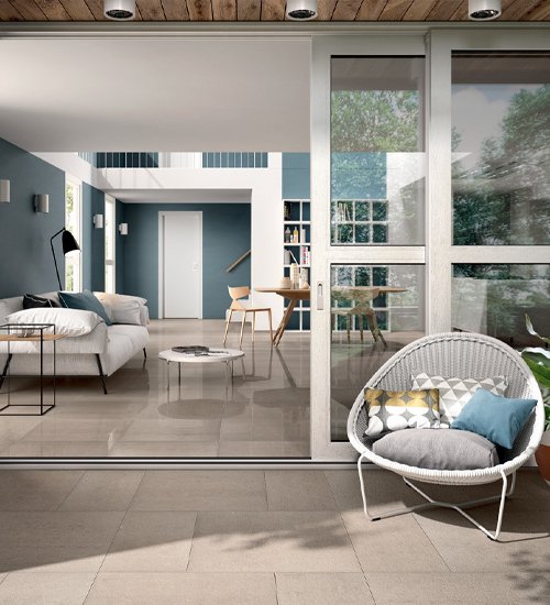 Soft, warm shades animated by gentle surface textures for homes with a comfortable, contemporary mood. Plus a wide range of opportunities for creating design and style continuity throughout the home thanks to the modulated design of the three different surfaces.