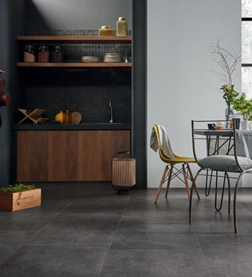 This is the first stone design where what you see is not what you get. The surface appears to be angular, but in reality it is soft. It seems to be a solid colour, but that is not the case. It looks like it doesn’t reflect, but if you walk on it, everything changes